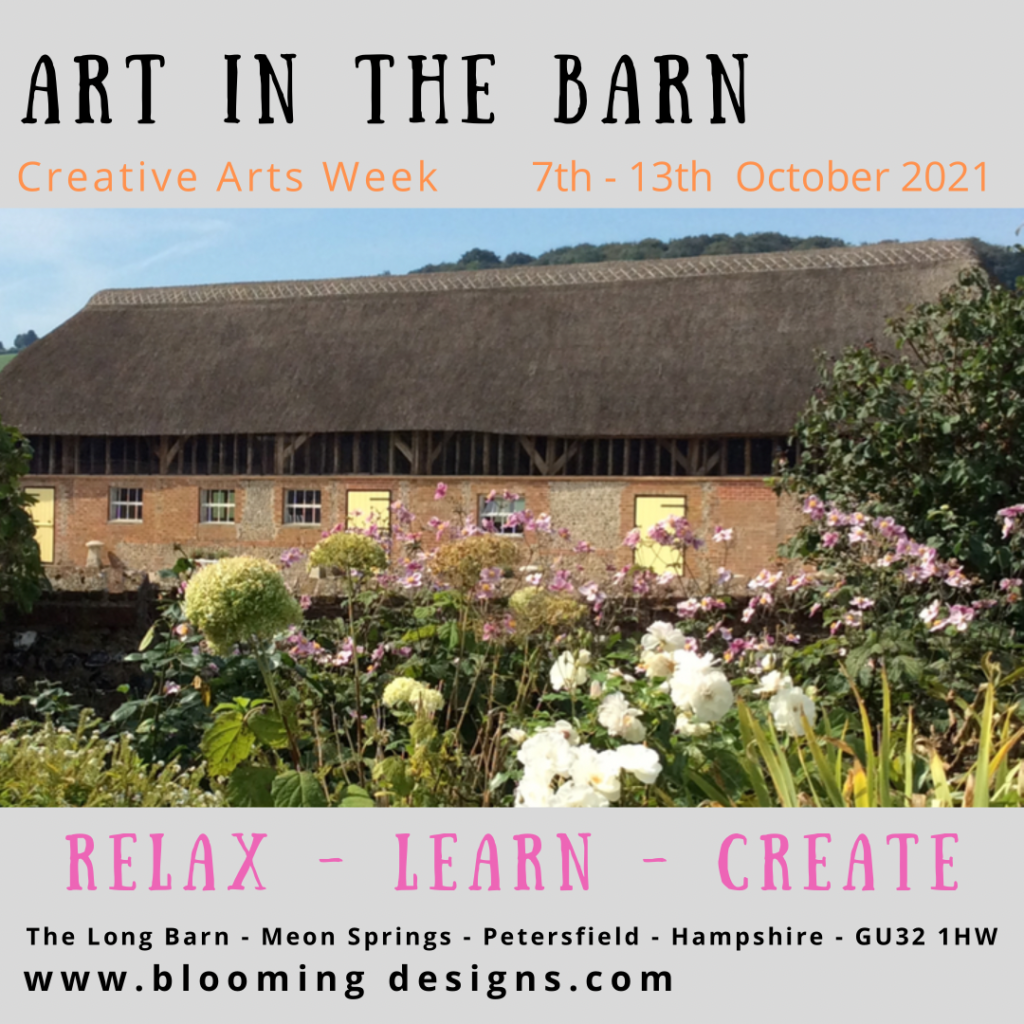 Join me in the beautiful Meon Valley from 7 – 13th October and choose from a range of creative workshops. A light and spacious thatched barn will be the venue for the Arts week, plus accommodation available on the farm, with a choice of shepherds huts or traditional yurts. Further details can be found at:…